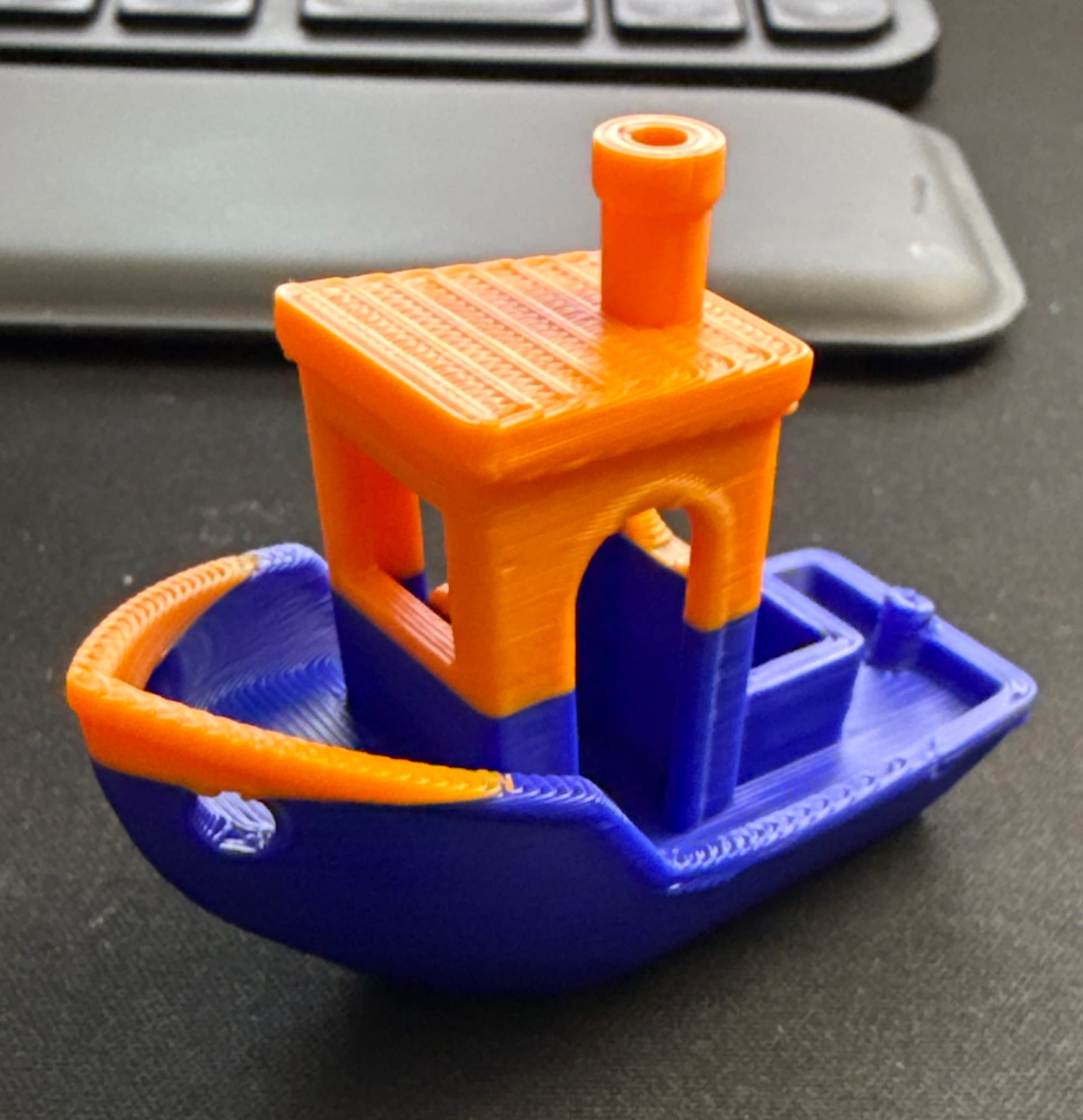Once that checked out, I printed a two-color Benchy to verify that both hotends were working properly together. That print came out clean.